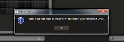 4. พอกด ok เสร็จมันจะมีหน้าต่างขึ้นมาอีกว่า "Please note that most changes won't take effect until you restart LMMS!" ก็ให้กด OK แล้วให้ปิดโปรแกรม LMMS แล้วเปิดขึ้นมาใหม่